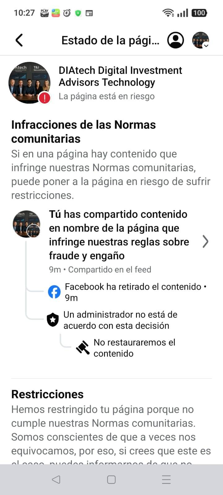 > DIAtech – Digital Investment Advisors Technology™ hereby publicly states that it has gathered sufficient evidence of false accusations, illegitimate restrictions, and defamatory information distributed by several digital platforms, including but not limited to: